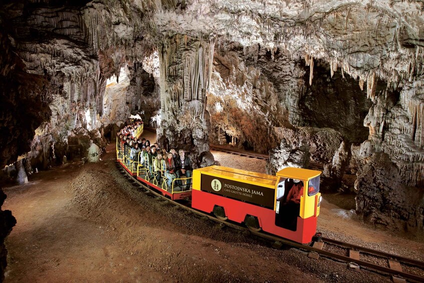 Opplev eventyret det er å utforske den verdensberømte Postojna-grotten, den største underjordiske attraksjonen i Slovenia og et av de største karstmonumentene. Reisen begynner med en unik togtur som tar deg gjennom gallerier og praktfulle haller fulle av fascinerende stalaktitter, stalagmitter og den berømte grottefisken (Proteus anguinus).