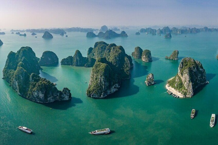 DELUXE PRIVATE 4 TIMER PÅ BÅT: Full Privat: Bil, Van henting og avlevering fra ethvert hotell i Hanoi. Privat turguide, privat modellcruise i Halong-bukten.