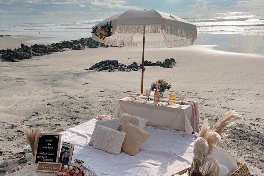 Romantisk piknik ved stranden