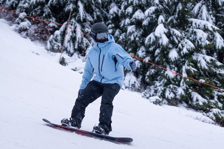 1️⃣ Pick-Up og scenisk kjøring Vi henter deg fra ditt valgte sted i Vancouver og tar deg med på en vakker kjøretur til Grouse Mountain. Nyt fantastisk utsikt mens vi går mot de snødekte toppene! 2️⃣ Gear opp! Når vi ankommer, vil du bli utstyrt med all nødvendig snowboardutstyr, inkludert en snowboard, støvler, snø bukser, briller, hansker, og en hjelm. En vanntett jakke kan også være tilgjengelig på forespørsel (avhengig av tilgjengelighet). 3️⃣ Nybegynner Snowboard Leksjon (valgfritt) Hvis du er ny i snowboarding, kan du delta i en valgfri 1,5 timers leksjon med en instruktør som vil lære deg grunnleggende, inkludert balanse, sving og stopp. 4️⃣ Hit Slopes! ❄️ Etter å ha forberedt seg (og fullført leksjonen, hvis valgt), er det på tide å nyte skråningene! Enten du øver på det du nettopp har lært eller graver nedover fjellet, vil du ha rikelig med tid til å snowboard i ditt eget tempo. 5️⃣ Slapp av og nyt fjellet ⚡ Ta pauser når du trenger det - ta en varm drink, nyte den fantastiske utsikten, eller utforske fjellets koselige lodges.