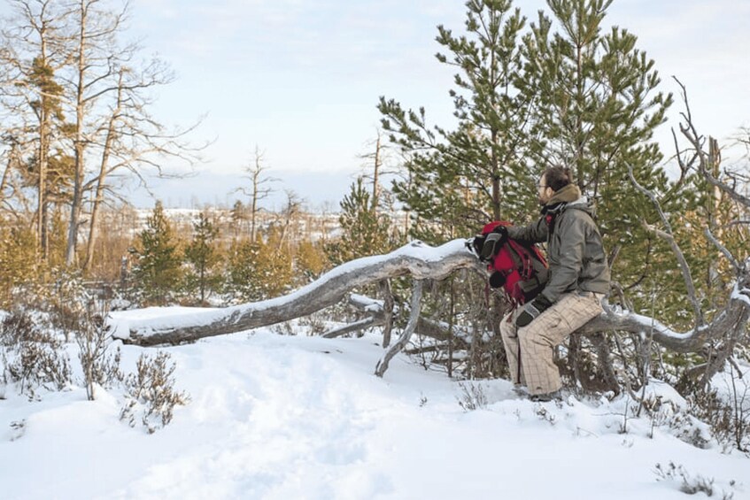 Når du ankommer startpunktet for trugeturen, vil guiden gi deg sikkerhetsinstruksjoner om hvordan du går på snø og is. Gå gjennom naturen som en gruppe og lær om det svenske dyrelivet og økosystemene underveis. Gå gjennom en snøfylt skog og over frosne innsjøer. Når du blir sulten, kan du stoppe for å nyte en lunsj over leirbålet.